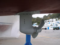 Un moteur VOLVO MD7A à 2cylindres et de 13,5cv, avec transmission par