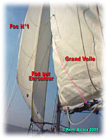 Génois par petit temps. Il faudra voir un fabricant de Voiles pour définir ce qui conviendrait le mieux avec ces côtes disponibles ! |