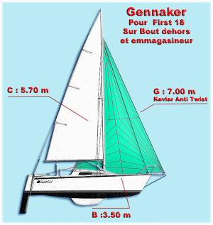 génois et la Grand Voile 5m2 de plus sur l'avant, qu'avec le génois seul ! Il faudra faire des économies pour acheter un Gennaker à lancer en plus du