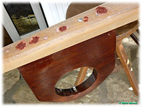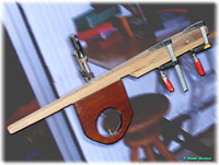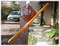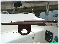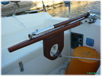 Stick prolongateur Lors de l'achat du bateau, le pilote se fixait sur la barre, faisant un angle important : 15 cm de dénivellation par rapport à l'horizontale, de plus il empêchait la pose d'un stick ! Ne désirant pas mettre un coude de fixation en alu, j'ai opté pour une pièce en Teck afin que écoutes et bouts, ne se prennent pas dans cet accessoire. |