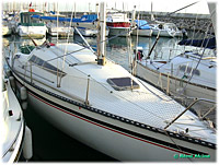 Le dessin général (années 80) est différent du "26" (années 70) Sur les séries à 3 chiffres, l'ensemble est plus anguleux, l'intérieur repensé : habitabilité différente mais en contrepartie une rançon des couchettes jetées à l'arrière : Un cockpit plus haut et beaucoup moins abrité...Attention aux embrunts ! le pont est beaucoup moins accueillant, en circulation avec des "passe-avant" étroits et des ridoirs gênants... sur le passage ! |
