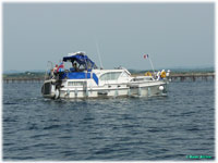 les pénichettes traversent l'étang, passant du "Canal du midi" à celui du " Rhône à Sète"