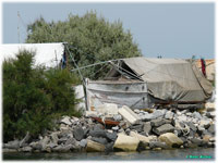 A l'entrée du port un cimetière de bateaux semble servir d'habitation